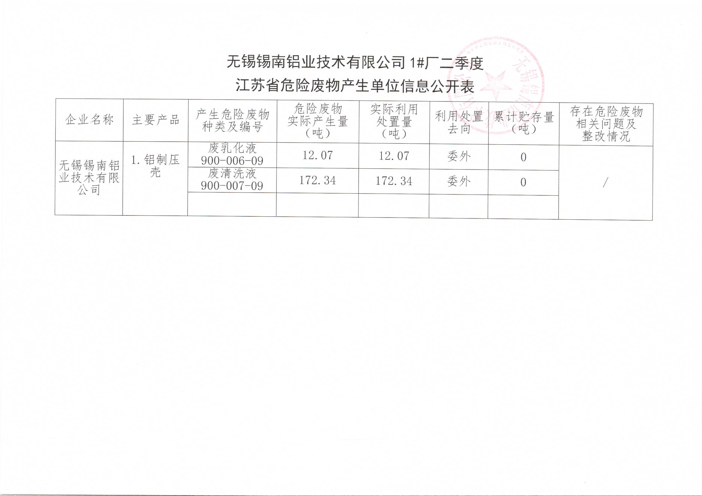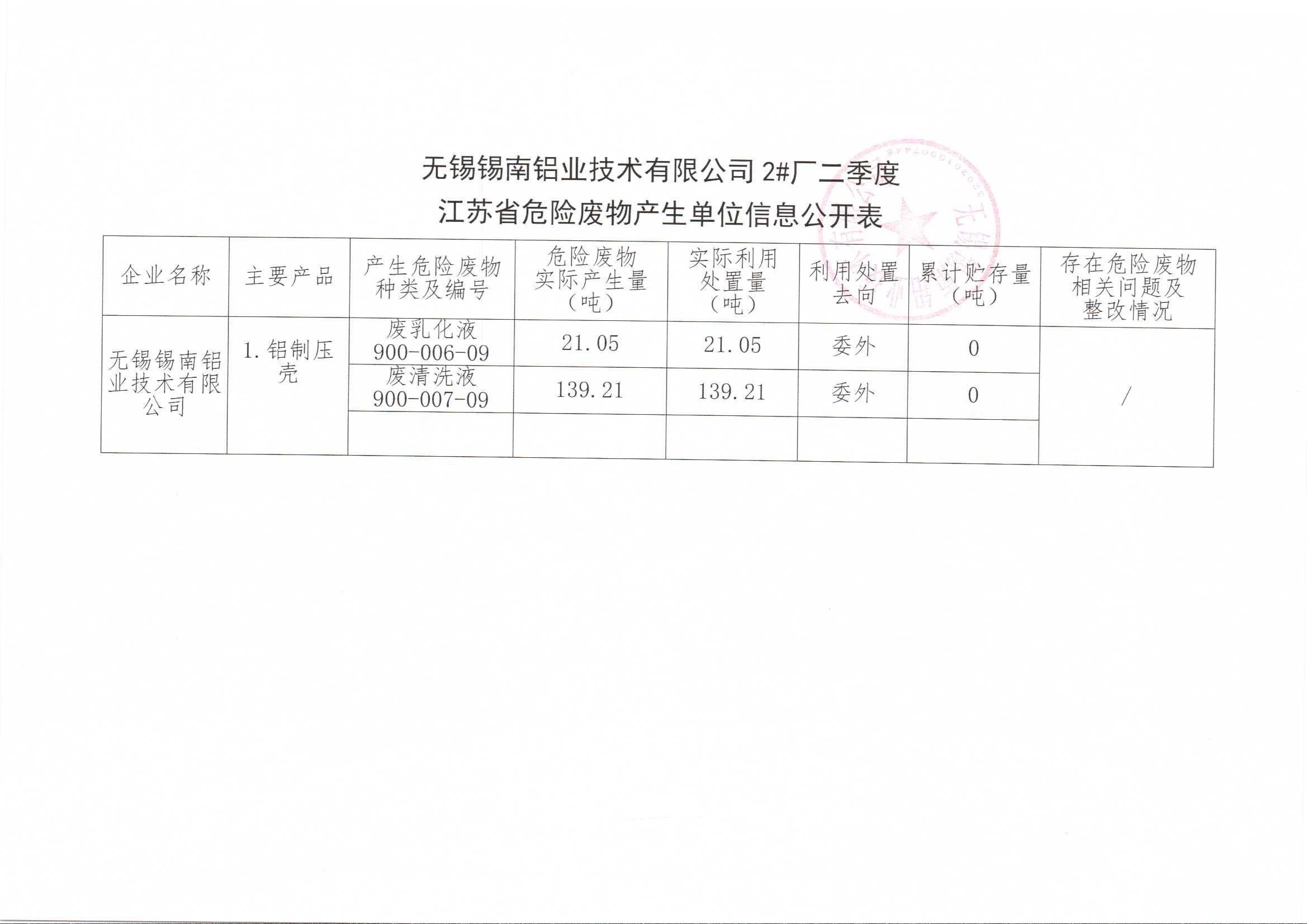 江蘇省危險(xiǎn)廢物產(chǎn)生單位信息公開(kāi)表(二季度)