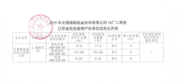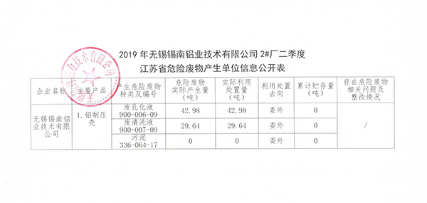 江蘇省危險(xiǎn)廢物產(chǎn)生單位信息公開表(二季度)